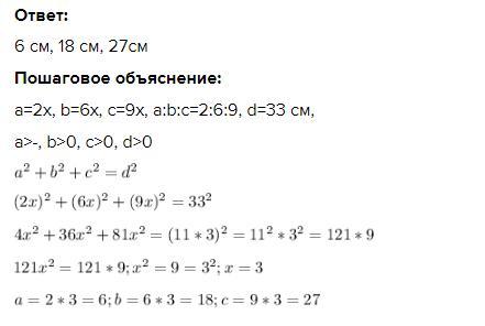 a=2x, b=6x, c=9x, a:b:c=2:6:9, d=33 см,