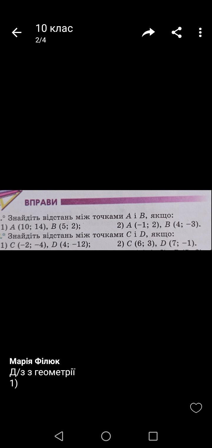 1) CD= √((4+2)²+(-12+4)²)=√(36+64)= √100=10