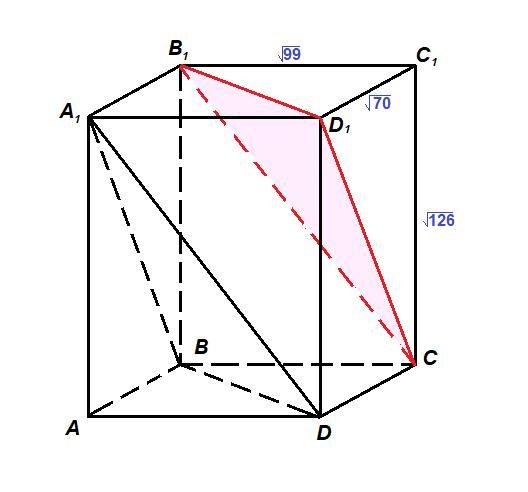 Дано прямокутниий паралелепіпед ABCDA1B1C1D1 у якого АВ=√70, BC=√99 AA = √126. Через вершину D, зроблено переріз паралелепіпеда, паралельний площині