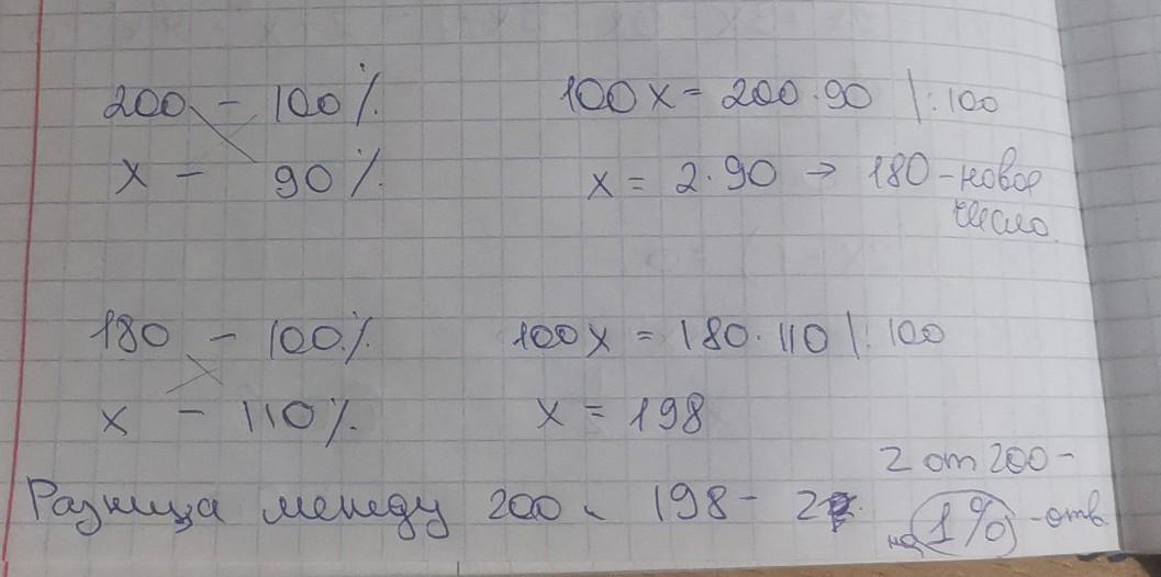 Число 200 зменшили спочатку на 10%,а потім одержане число збільшили на 10%.На скільки відсотків змінилося число?