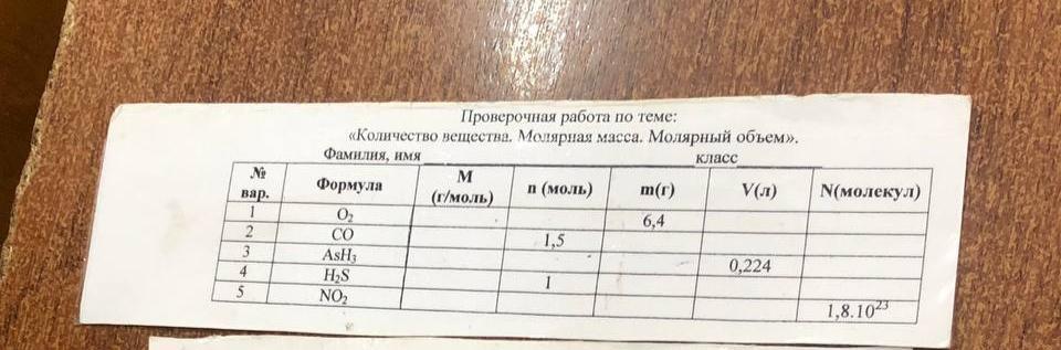 4) N(H2S) = n * NA = 1 * 6,02*10^23 = 6,02*10^23.