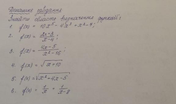 2) D( f ) = R , крім х = 4 ;