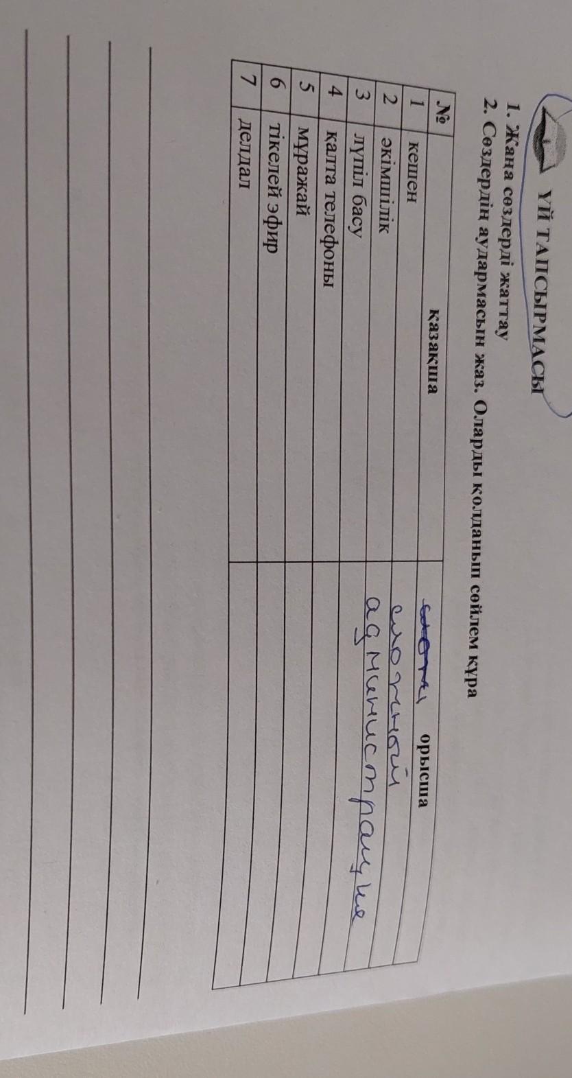 1. Жаңа сөздерді жаттау 2. Сөздердің аудармасын жаз. Оларды қолданып сөйлем құра №o 1 2 3 4 5 6 ҮЙ ТАПСЫРМАСЫ 7 садак жебе сауыт хан сандык кебеже сәукеле қазақша орысша СРОЧНО