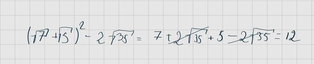 (√7 + √5)² - 2√35 = √7² + 2 × √7 × √5 + √5² - 2√35 =