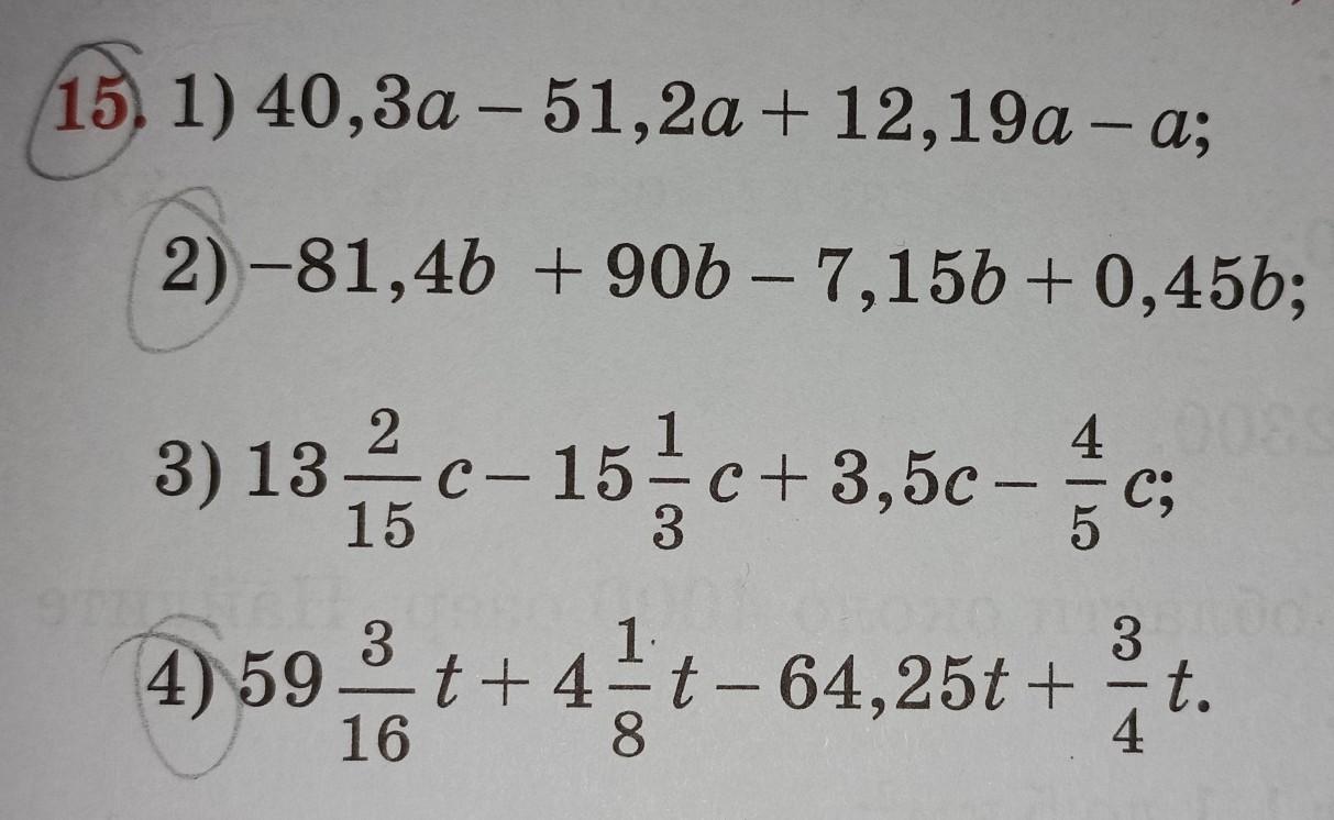 4) 59 3/16t+4 1/8t -64,25t +3/4t