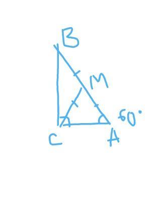 ∠АМС=180-2×∠А=180-2×60=60°, значит