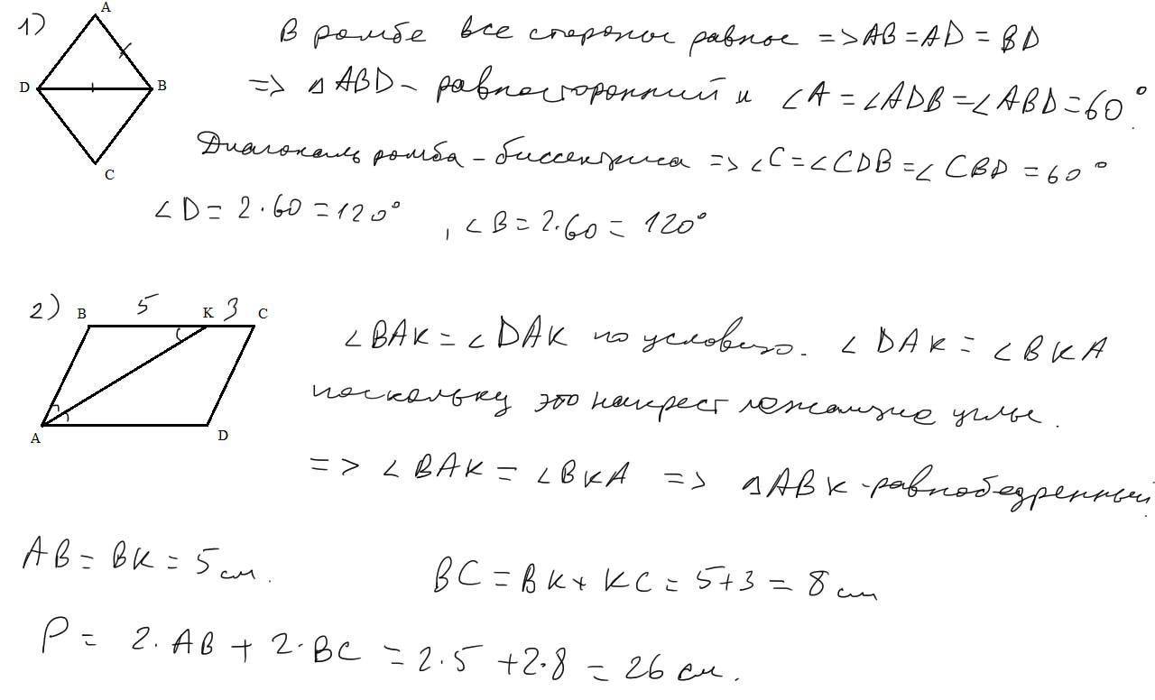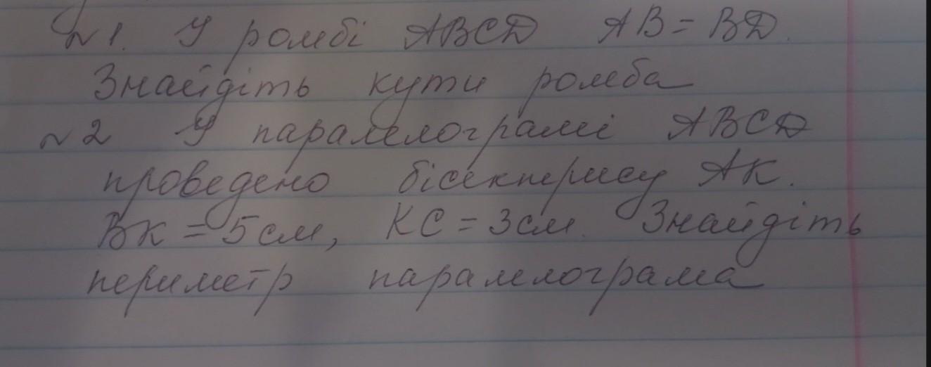 1 . у ромбі abcd ab=bd знайдіть кути ромба