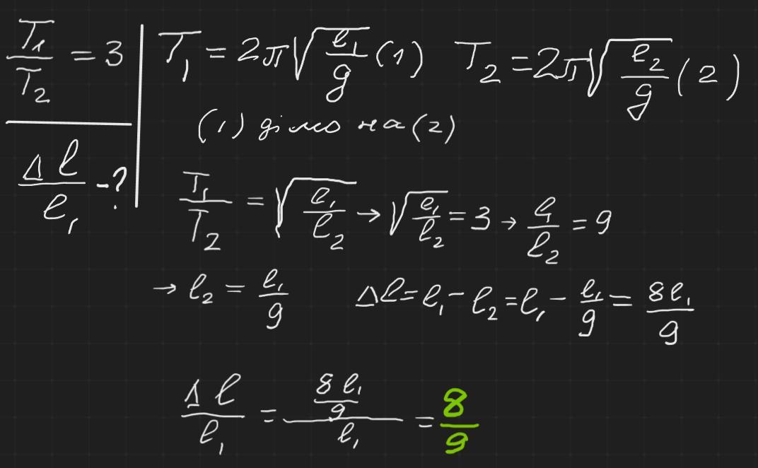 Дам 100 баллов На яку частину треба зменшити дліну мат маятника щоб його період зменшився в три рази
