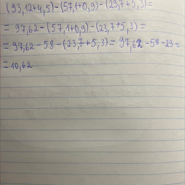 (93,12 + 4,5) - (57,1 +0,9) – (23,7 + 5,3) × 70