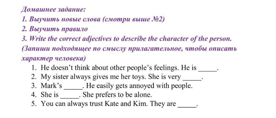 (Запиши подходящее по смыслу прилагательное, чтобы описать характер человека)