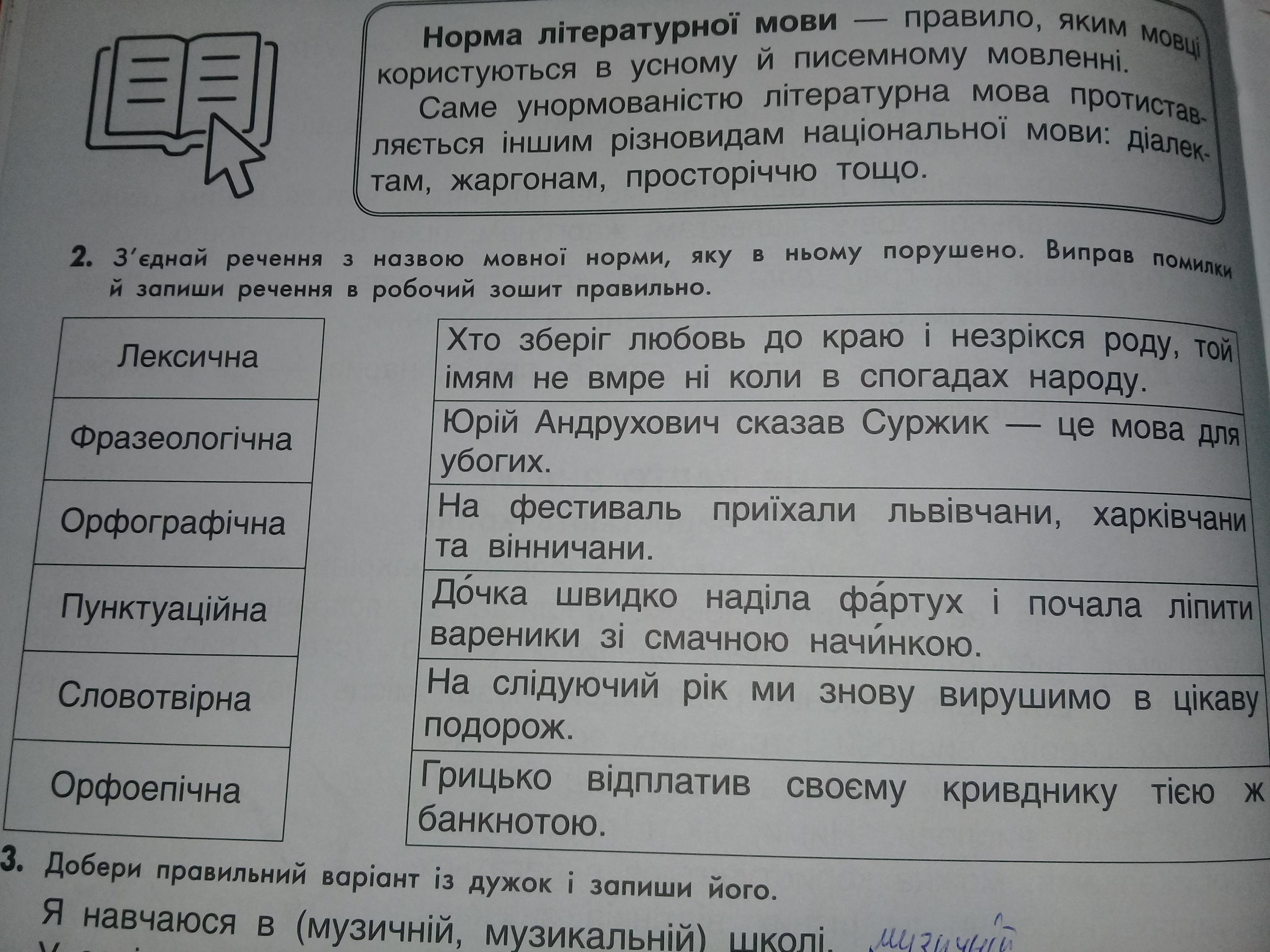 з'єднай речення з назвою мовної норми,яку в ньому пропушено. виправ помилки допоможіть