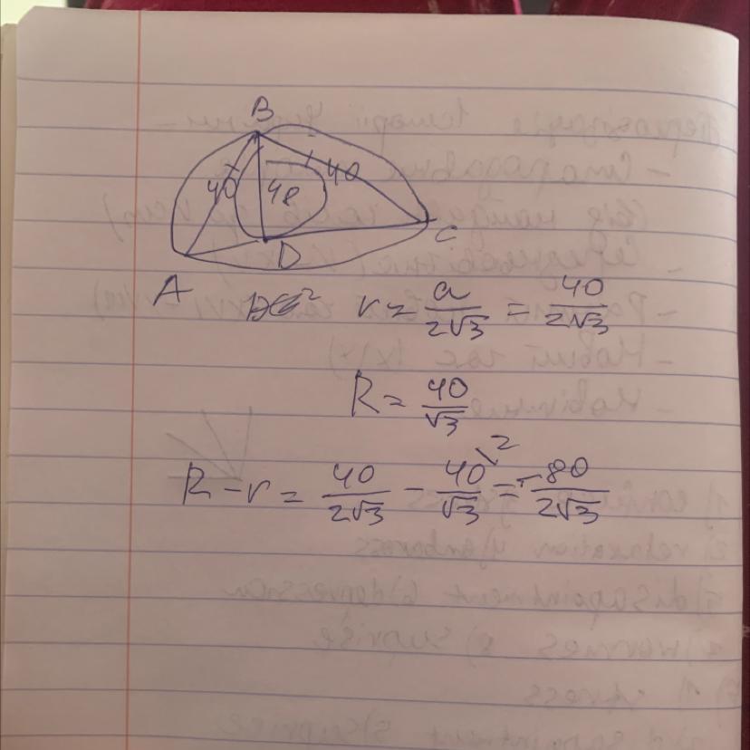 У рівнобедреному трикутнику бічна сторона дорівнює 40см,а висота дорівнює 48см. Обчисліть різницю радіусів вписаного і описаного кiл.