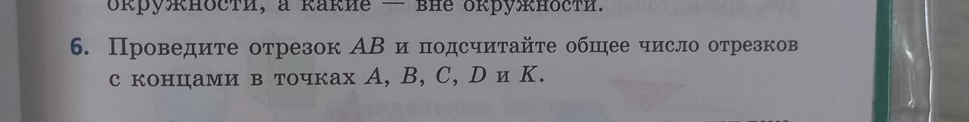 Отрезки: АВ, AD, AC, AK, BD, BC, BK, DK, CD, CK, итого 10