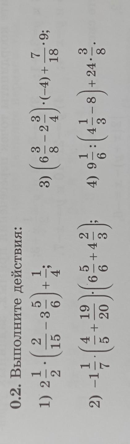 0.2. Выполните действия: 2 3 15 6 1 1) 2. 2 2) -1 - 5 4 19 + 20 + HⓇ 65 +4 2 3 3) 6 4) 9 - 3 · (−4) + 7 18 -8+24. 8) + -9; 3 -