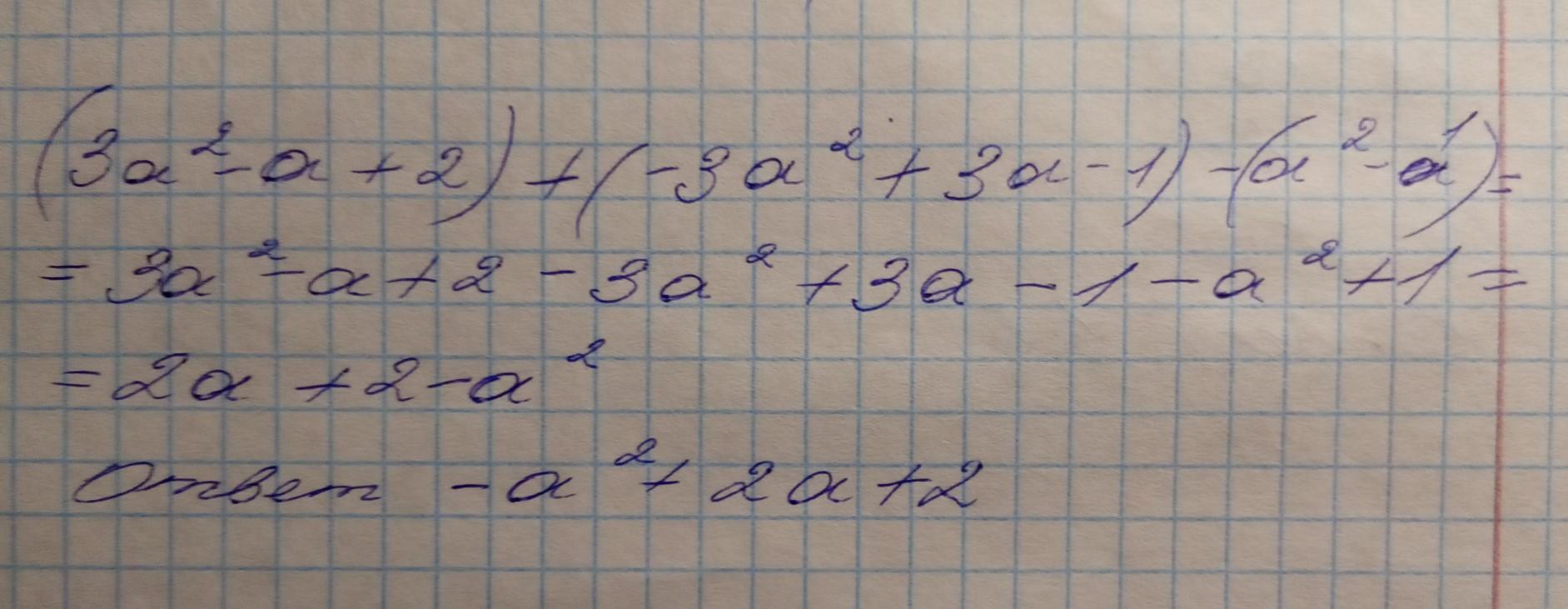 Ответ: 3a² - a + 2 - 3a² + 3a - 1 + a² + 1