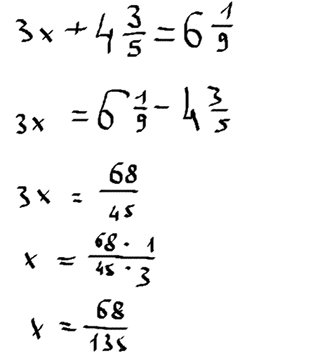 6 1/9= 55/9 ; 4 3/5= 23/5 __________6 1/9 - 4 3/5 =55/9 -23/5= (275-207)/45 {45-общий знаменатель} =68/45