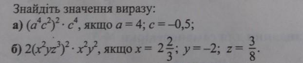 а) (a^4c^2)^2*c^4=a^8c^4C^4=a^8c^8 при а=4 с=-0,5 =>