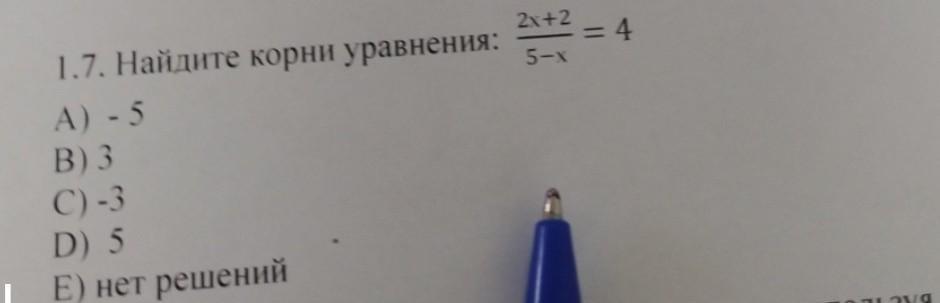 1.7. Найдите корни уравнения: A) - 5 B) 3 C) -3 D) 5 Е) нет решений 5-x параболы, используя фору