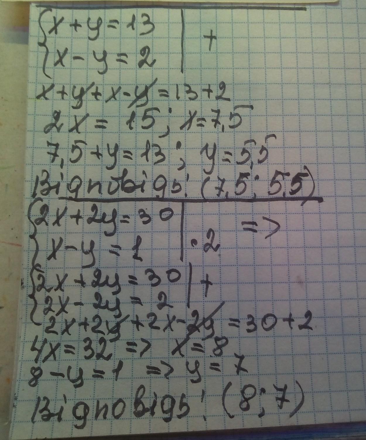 Розвязати системи рівнянь зручним способом x+y=13 x-y=2