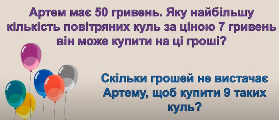Артем може купити 7 кульок на 50 грн а на 9 кульок йому не вистачає 13 грн.