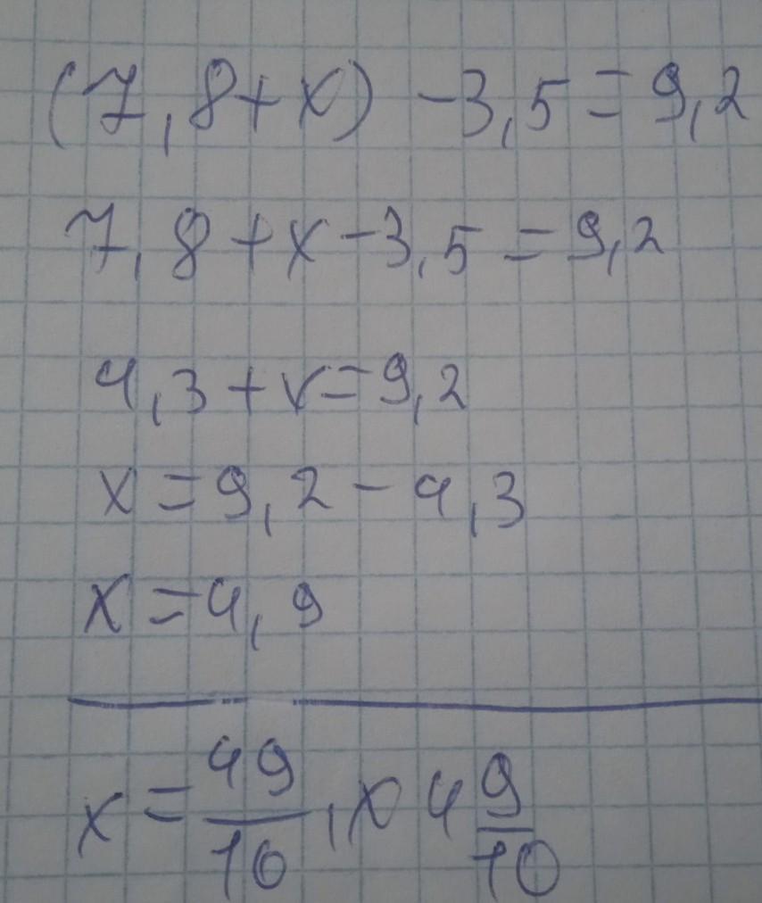 x−3.5+7.8=9.2 (7,8-3,5)=4,9