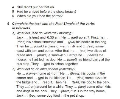 6.a)slept,got,read,put,drank,ate,cut,made,left,met,went