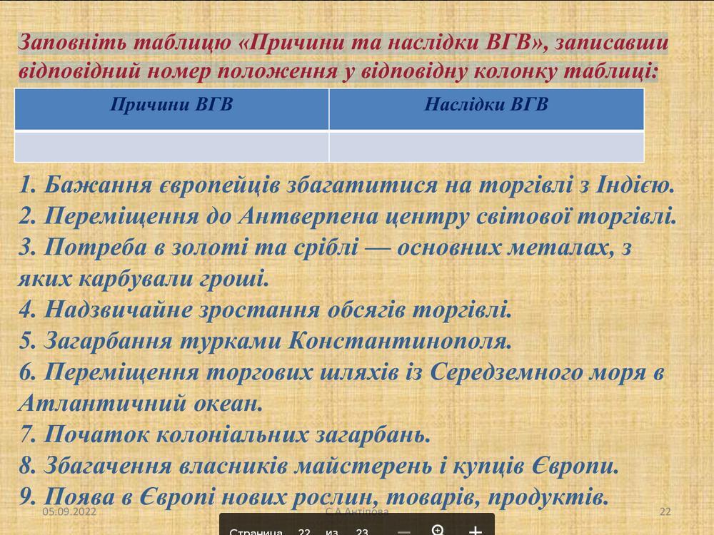 Заповніть таблицю «Причини та наслідки ВГВ», записавши
