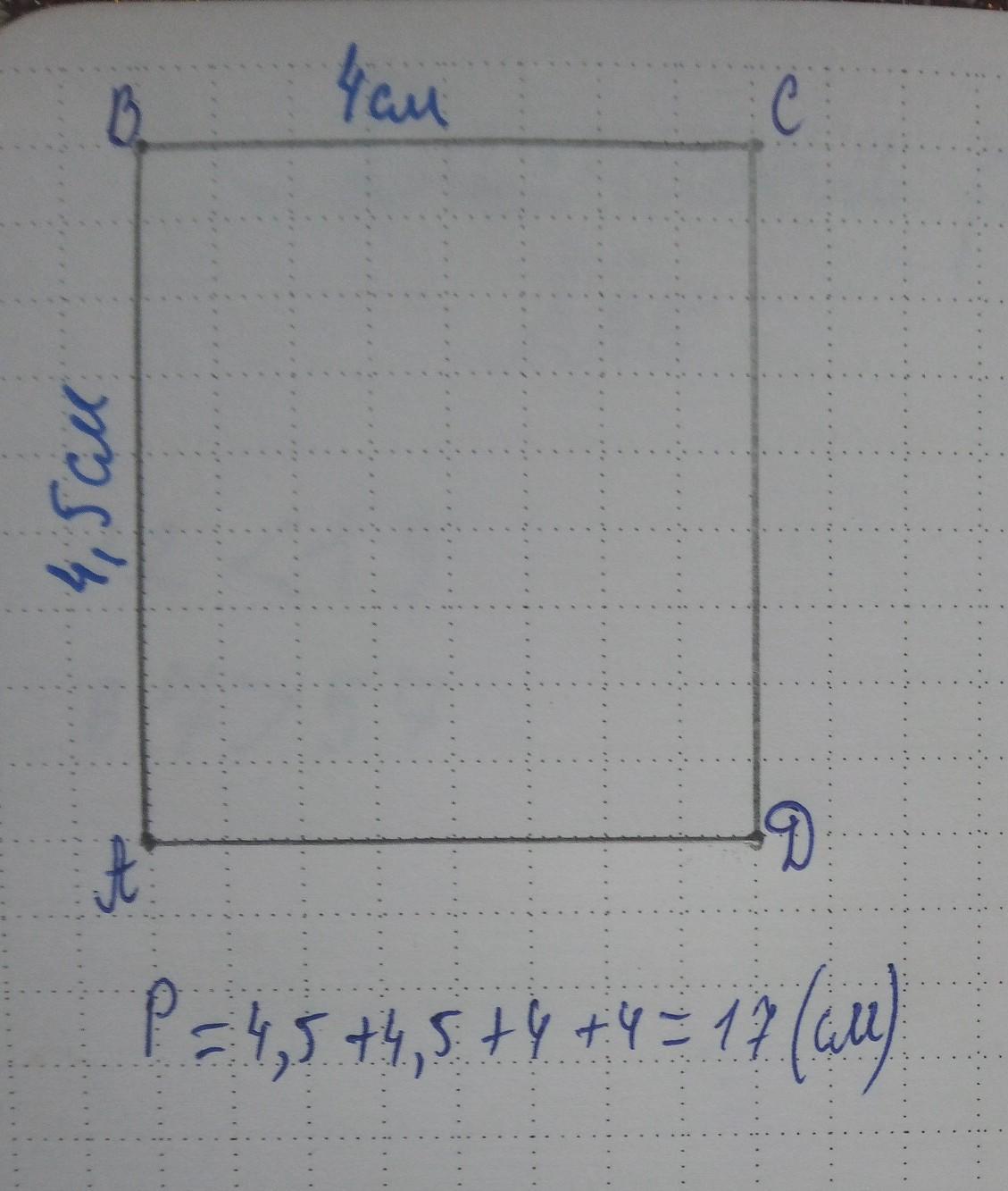 Накресліть прямокутник ABCD, довжина якого дорівнює 4 см, а ширина становить 4