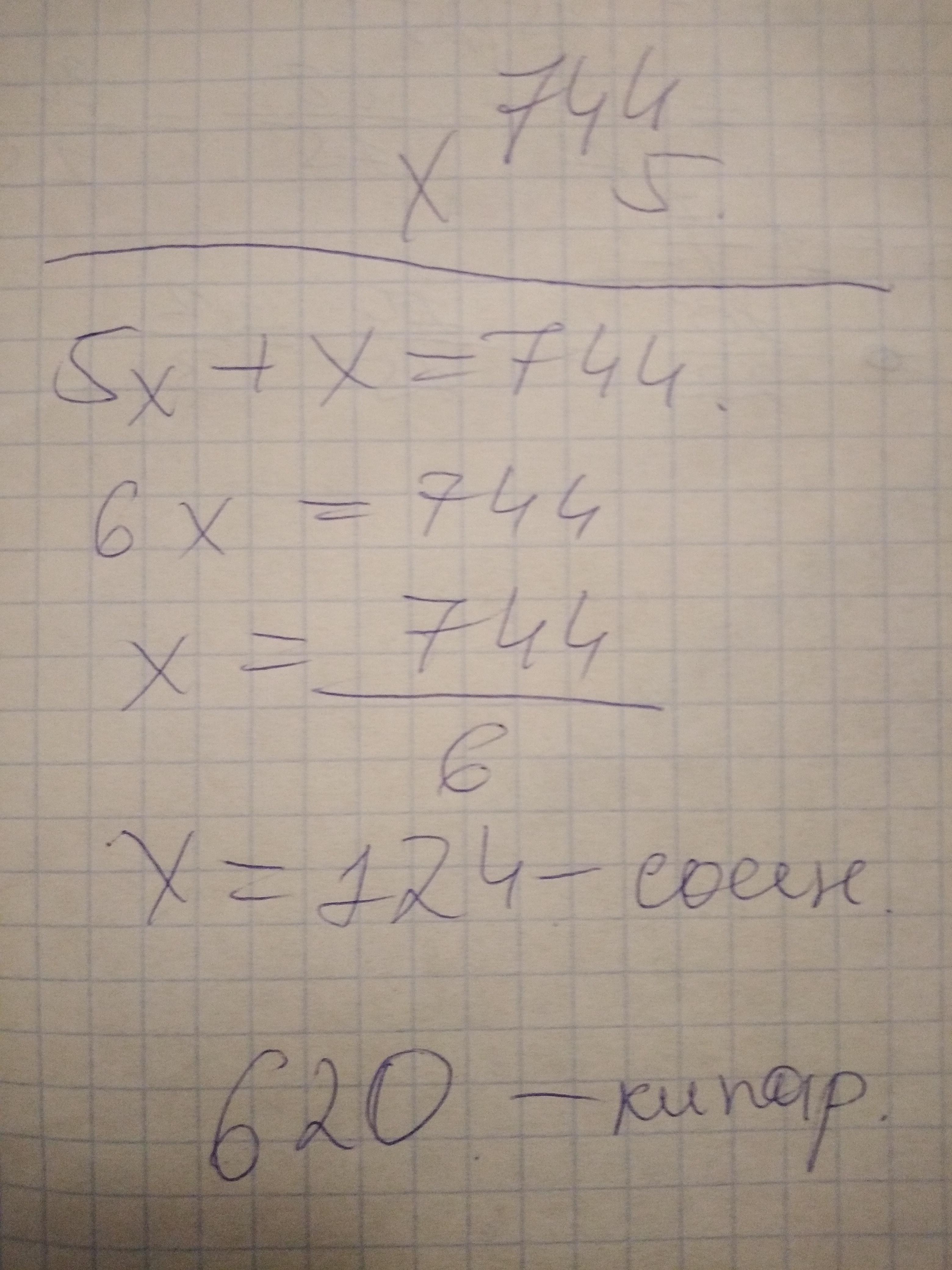 654.В парке посадили 744 кипариса и сосны. Число сосен в 5 вида посадили в парке, раз больше числа кипарисов. Сколько деревьев каждого