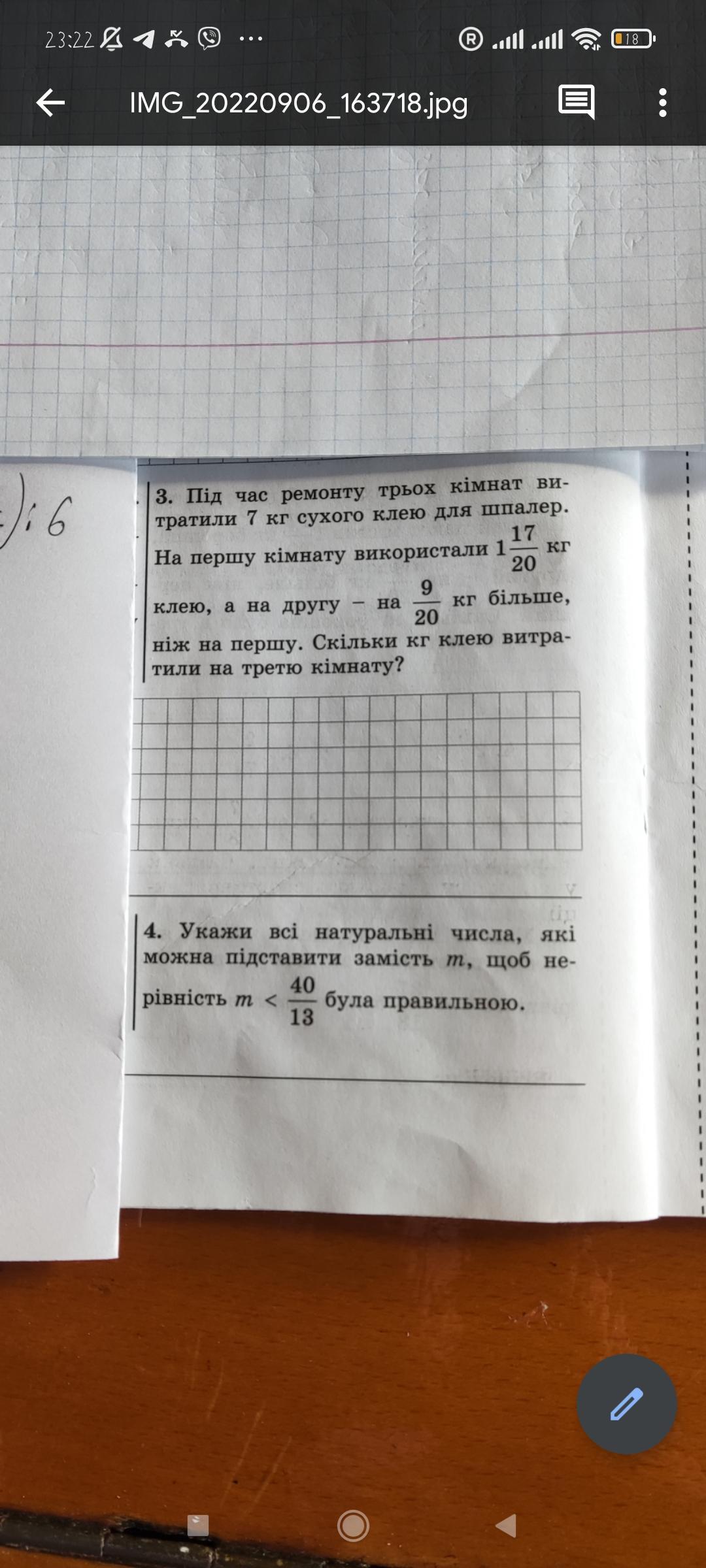 2) 1 17/20 + 2 6/20 = 3 23/20 = 4 3/20 (кг) - клея израсходовали на 1 и 2 комнату