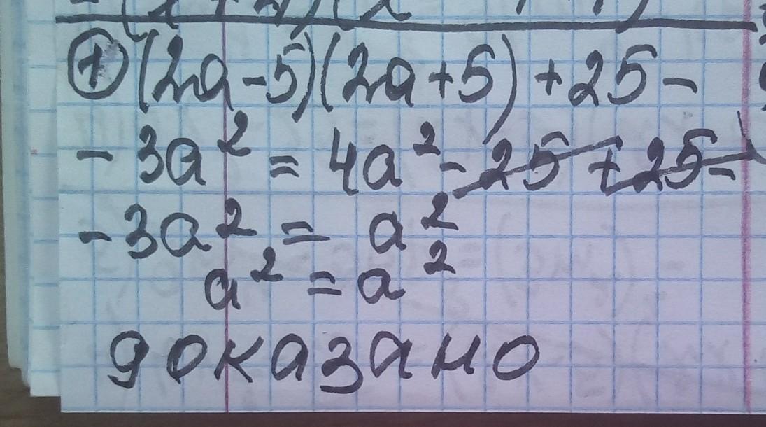 14. Докажите тождество: 1) (2a - 5)(2a + 5) + 25 - 3a² = a²; 2) (a + 6)(3a - 4) + 2(12 - a² - 6a) + 1 = (a + 1)².