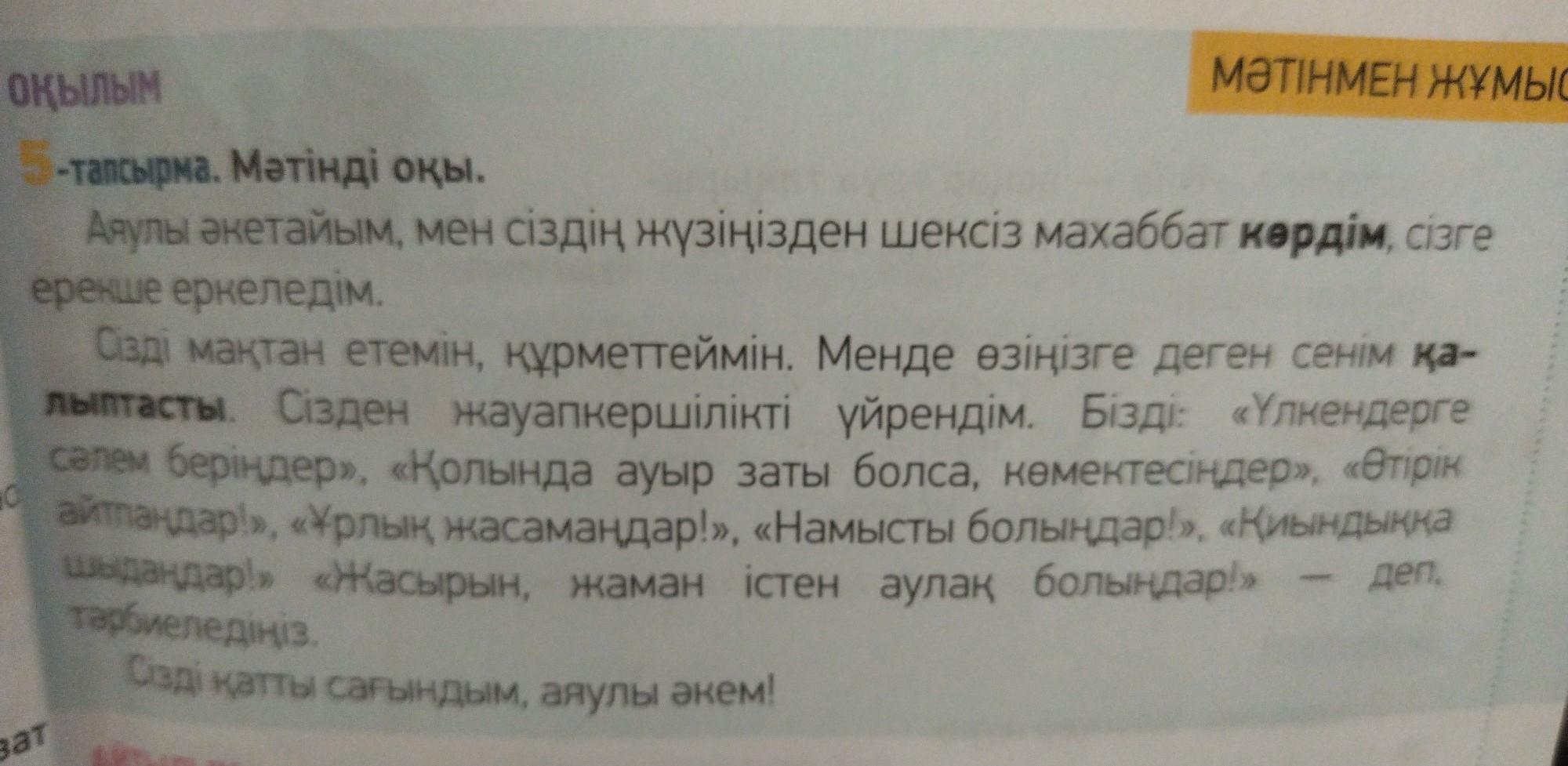 ЖАЗЫЛЫМ АЙТЫЛЫМ 7-тапсырма. Мәтіндегі деректi және дерексіз зат есімдерді беліп жаз. Олардың мағынасын түсіндір.