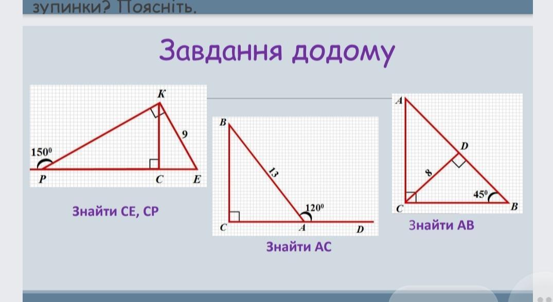 Так як катет СЕ лежить проти кута величина якого 30°, він дорівнює половині гіпотенузи: