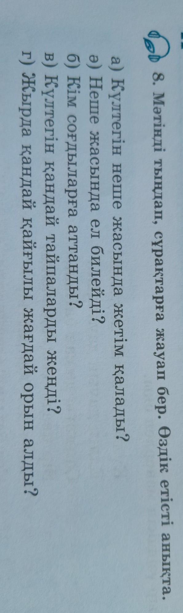 Күлтегін оттай лаулады,Елдің даудын даулады...Салмаған да сан батпан, бір кезде ол қонды атқа, Баяғыдан қайратты, Қос батырды жайратты. Күлтегін -ел қанаты, Отыз бірде болатын. ...Бозын мініп Күлтегін, Алдаспанын сілтеді. Алты жауын түйреді, Жетіншісін сүйреді. Үшінші рет тоғыстық, Оғыздармен соғыстық, Пышыратып әскерін, Шығардық шын естерін.