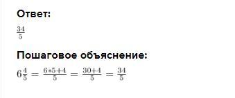 6\frac{4}{5}=\frac{6*5+4}{5}=\frac{30+4}{5}=\frac{34}{5}