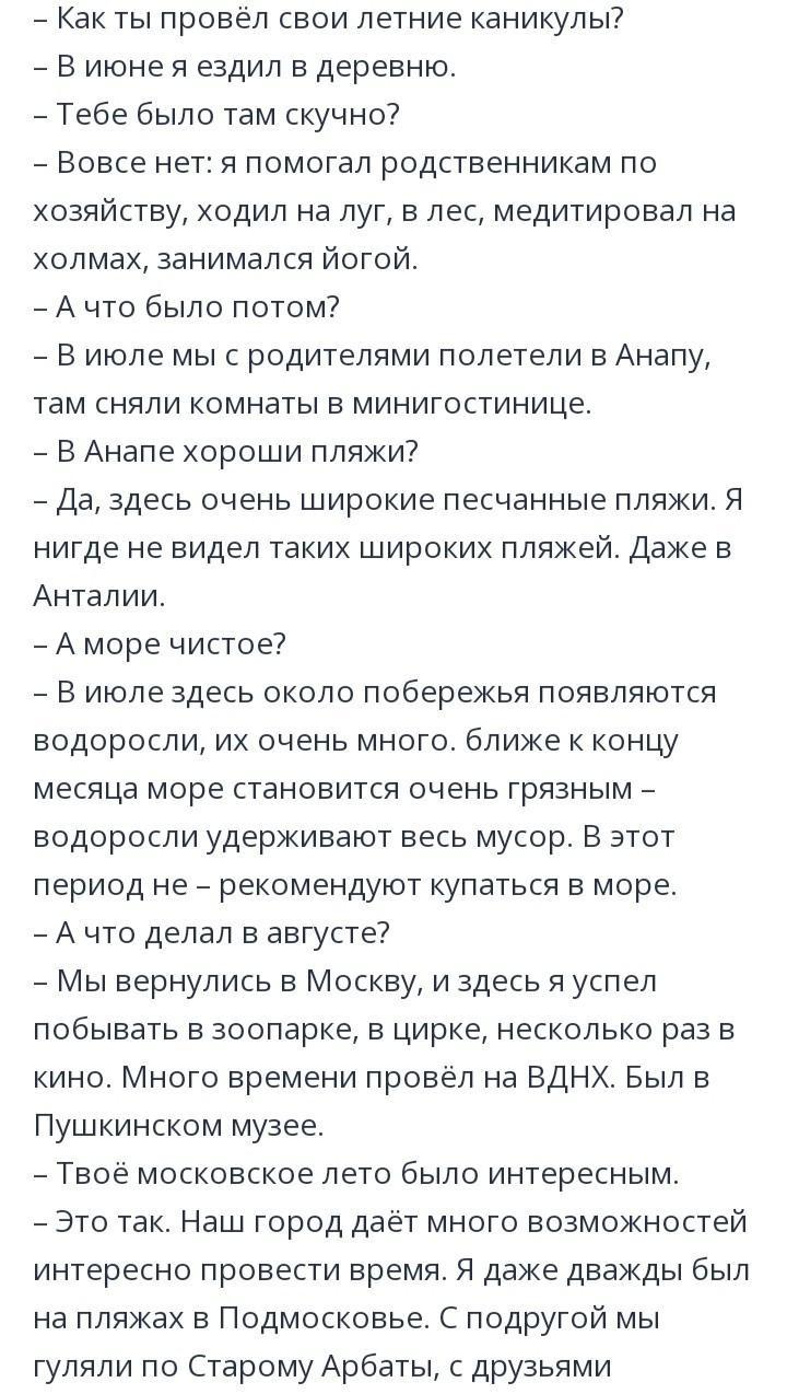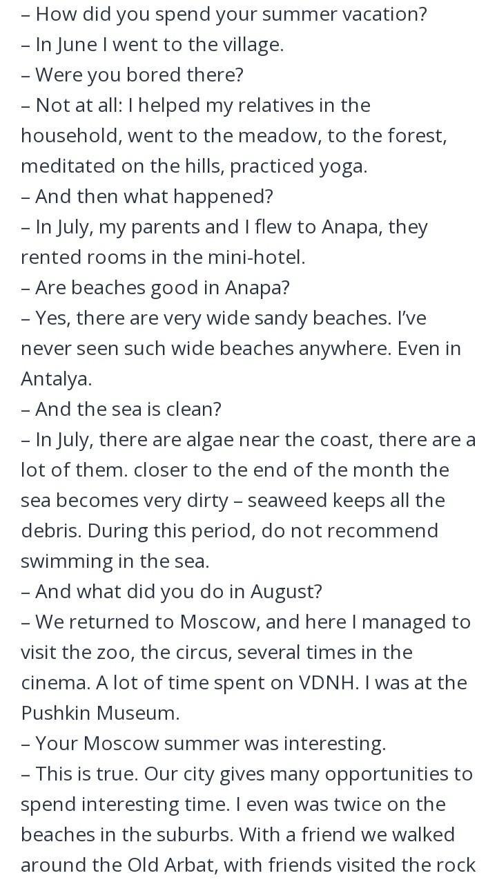 Помогите пожалуйста составить диалог на английском между мной и кем то на тему как я провёл своё лето