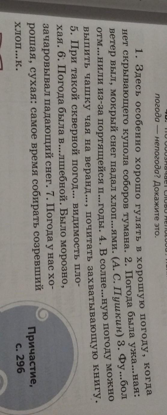 4А. Спишите предложения, вставь- те пропущенныIe бYKBbI. Подчеркните прилагательные, которые характери- зуют погоду. В какие две группы их можно объединить? Какую погоду обозначают прилагательные в каж- дой группе? Почему человек ис- пользует так много прилагательных к слову погода?