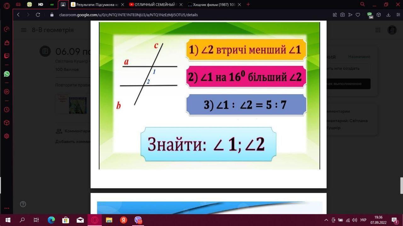 3) ∠1=5х°, ∠2=7х°; 2х+7х=180; 9х=180; х=20; ∠1=20*5=100°, ∠2=28*7=140°