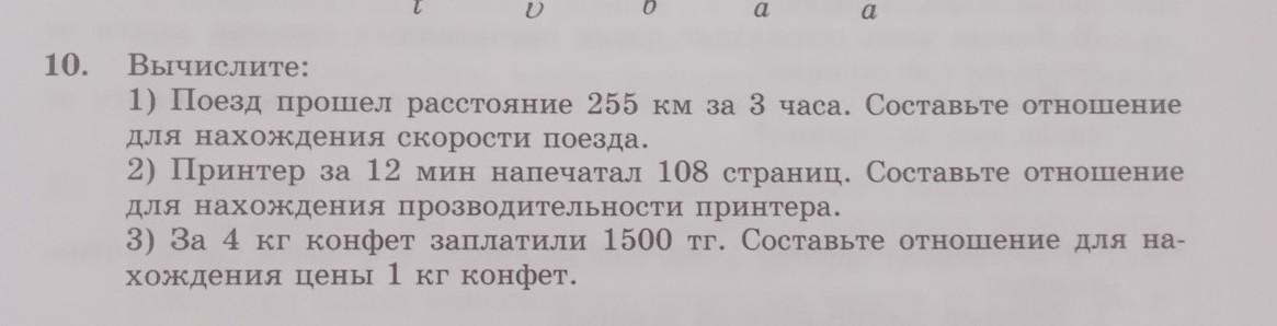 Во всех трёх примерах просят вычислить отношение двух величин (то есть, поделить что-то на что-то и получить дробь или число).