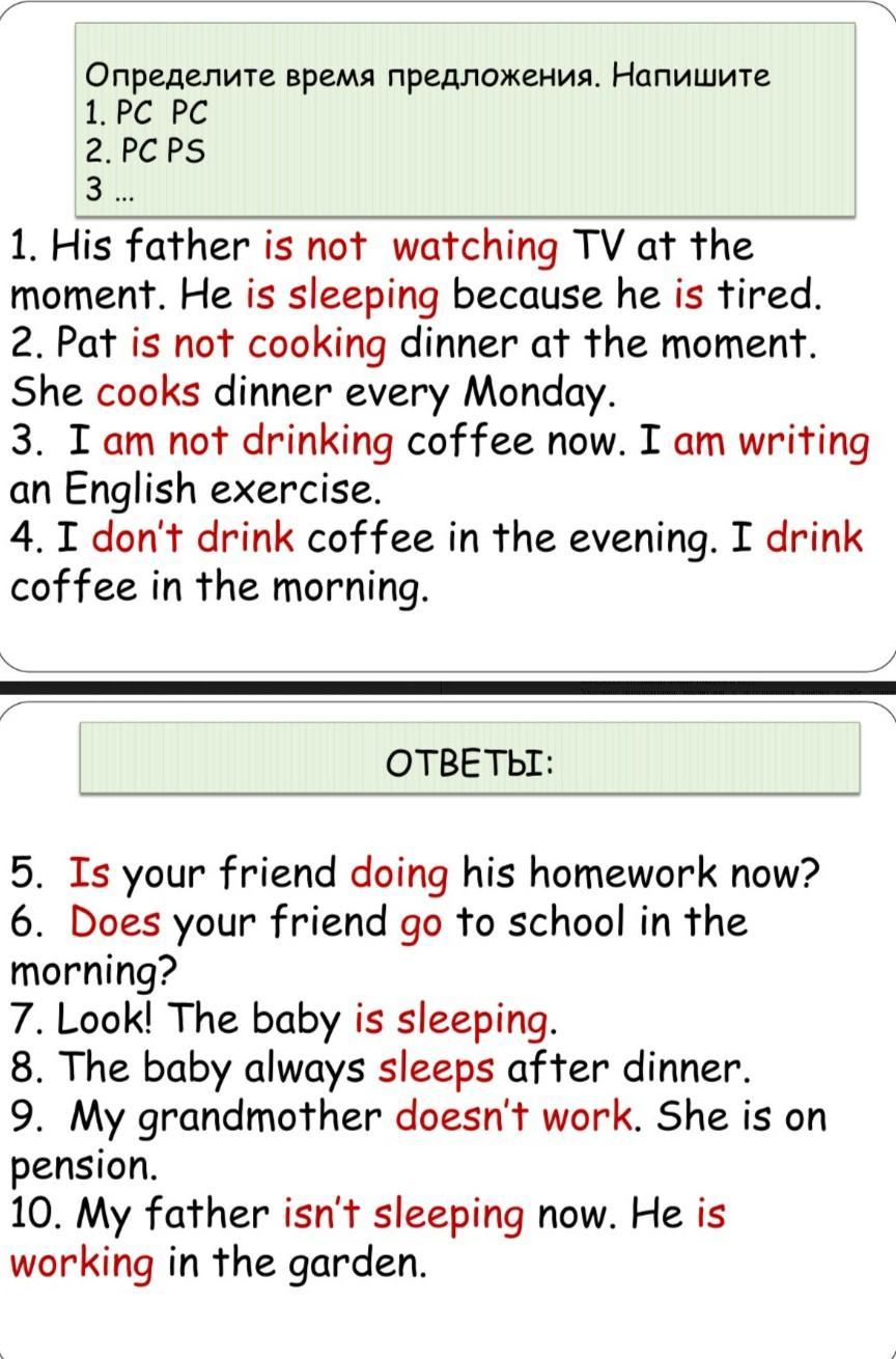 надо понять в каком времени написано предложение Present Simple/Present Continuous