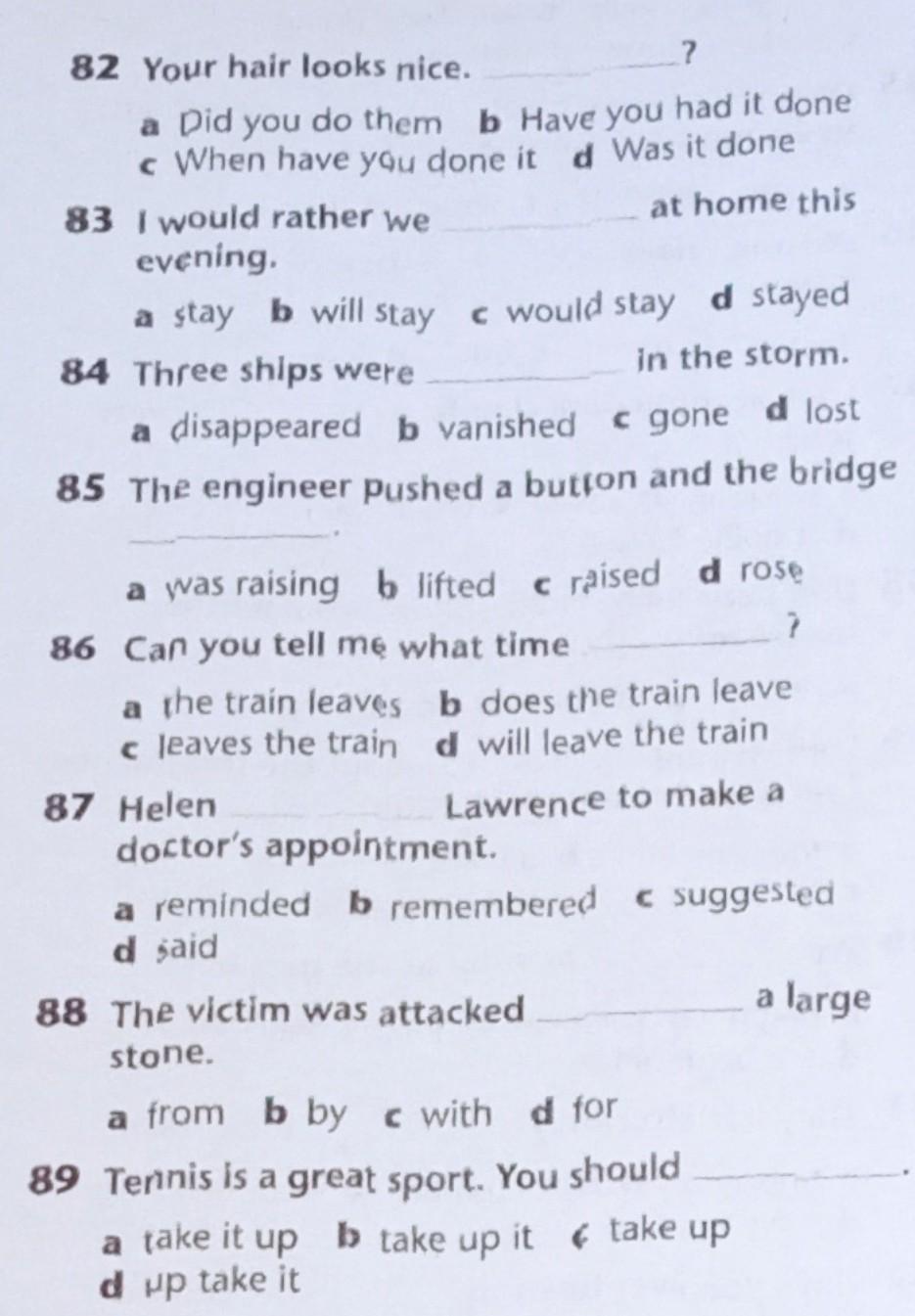 85. D - to rise - подняться, варианты b и c означают поднять что-то, а вариант a не подходит по времени, так как действия меняются один за другим