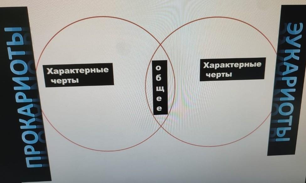 Общее:у обоих цитоскелет,У обоих хромосомы и у обоих рибосомы.