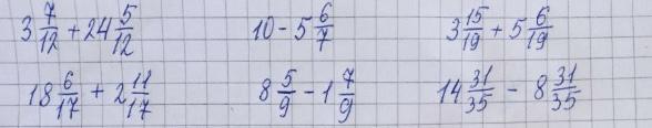 1) 3 целых 7/12 + 24 целых 5/12=?