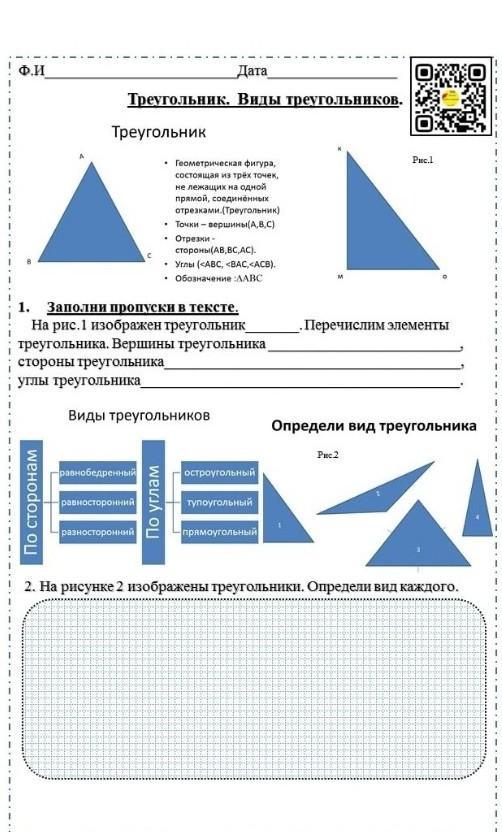на рис. 1 изображен треугольник МКО. перечислим элементы треугольника. вершины треугольника M, K, O; стороны треугольника MK, KO, OM; углы треугольника MKO, OKM, MOK