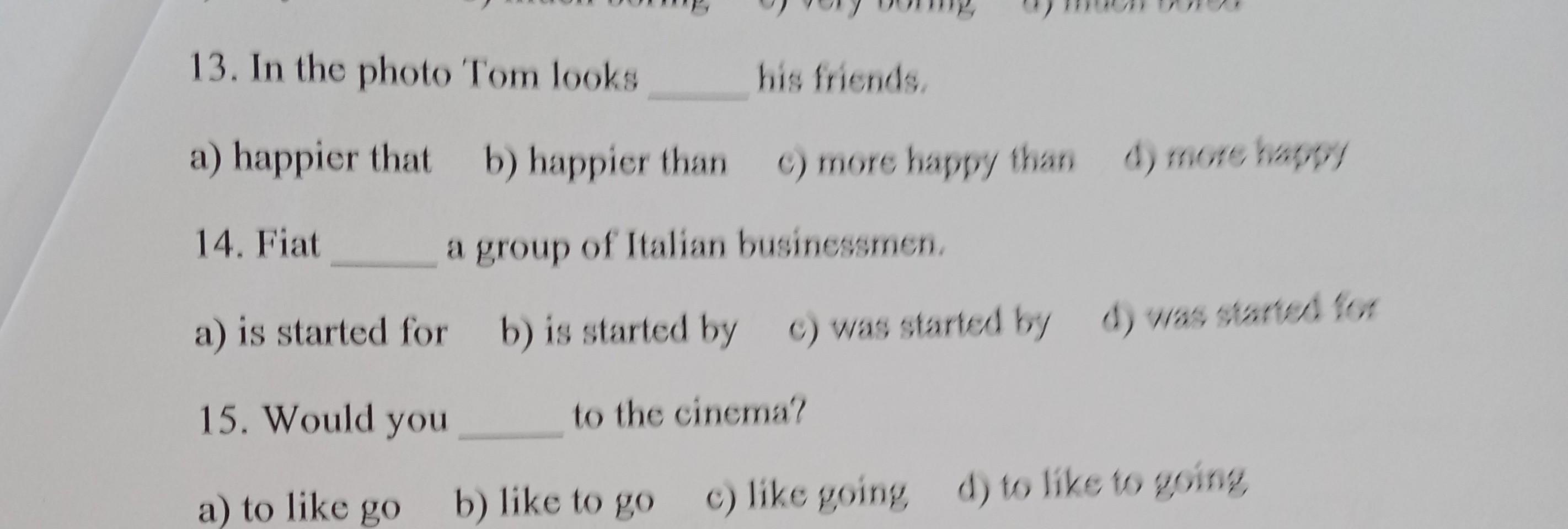13 - сравнительная степень прилагательного happy - happier, со сравнительной степенью используется слово than (чем)