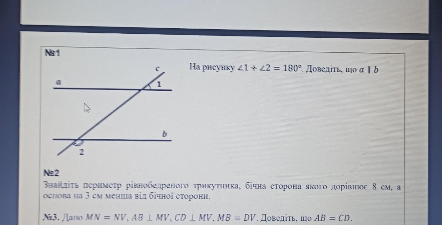 На рисунку кут 1 + кут 2 =180° Доведіть що а || b​
