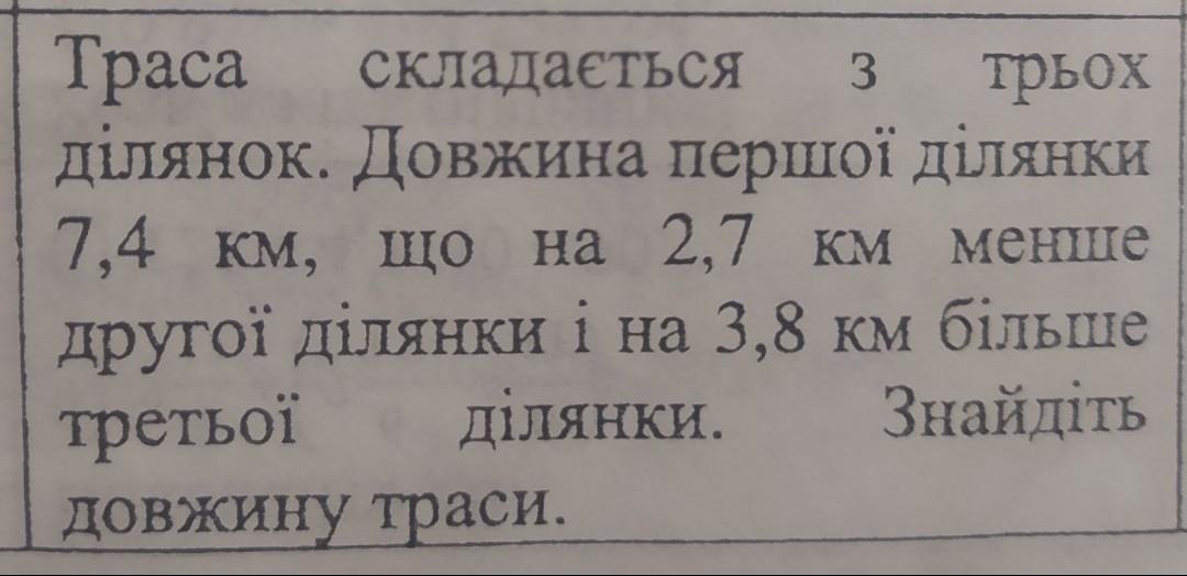 Ответ:1 ділянка 8,2 км. 2 ділянка-4,5 км. 3 ділянка-15,5 км. Разом 28,2 км.
