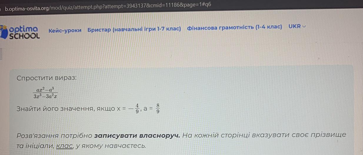 вынесем общий множитель за скобки,сократим.потом подставим значение а и х