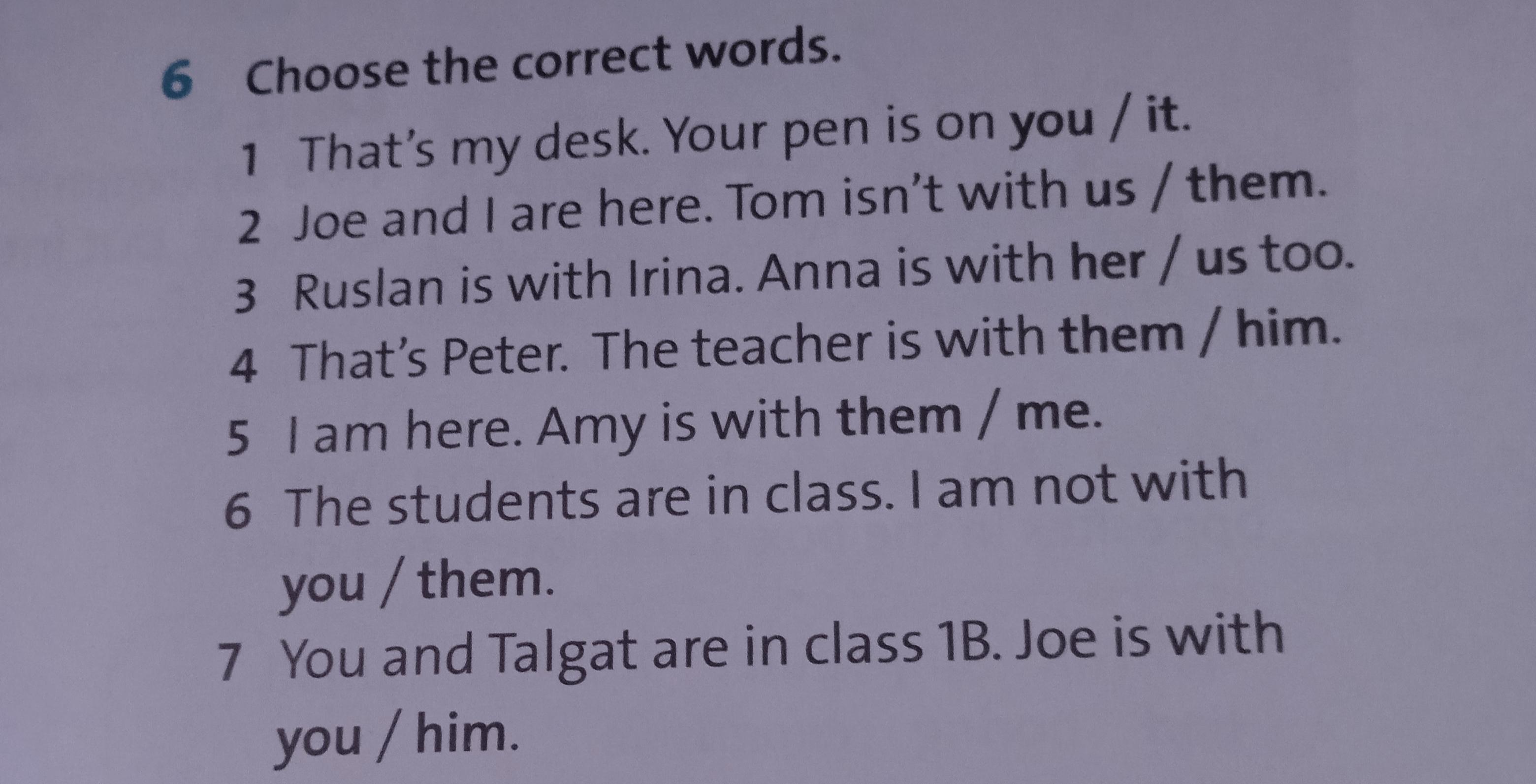 1. it 2. us 3.her. 4. him 5.me 6. them 7.you