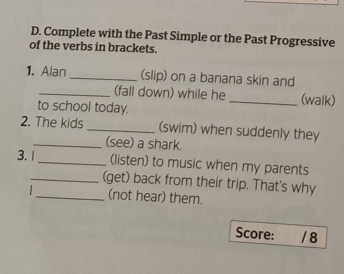 3, I was listening to music when my parents got back home from their trip. That's why I didn't hear them.